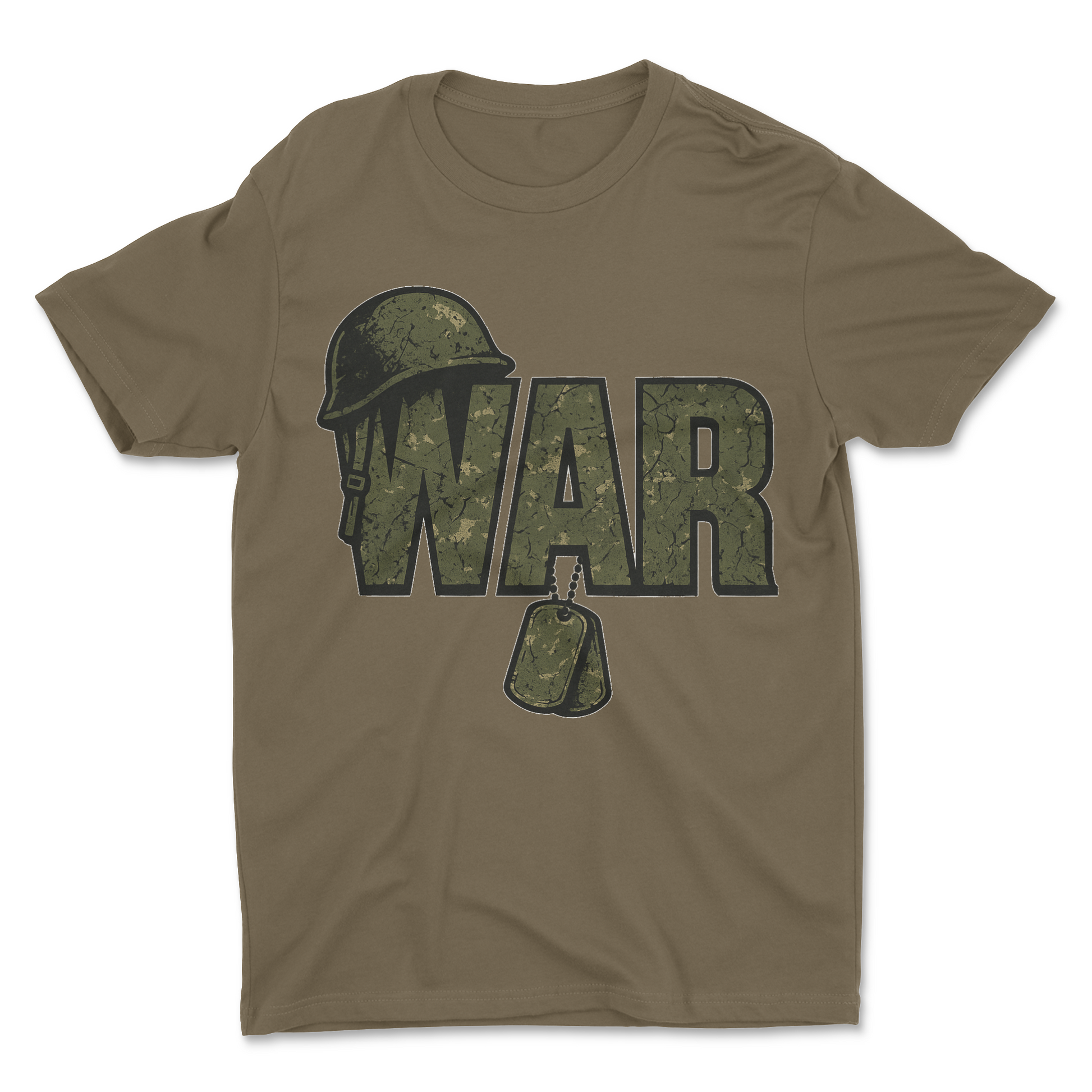 This bold and battle-worn logo features the word "WAR" in aggressive, cracked camouflage lettering, symbolizing the unshakable mindset of a true warrior. A combat helmet hangs off the "W" while dog tags dangle from the "R," reminding everyone that this isn’t just a look—it’s a mentality. Whether you're stepping into the ring, the gym, or the battlefield of life, this design represents focus, grit, and the unrelenting will to win. Perfect for fighters, athletes, and anyone who lives with purpose and fights with passion..